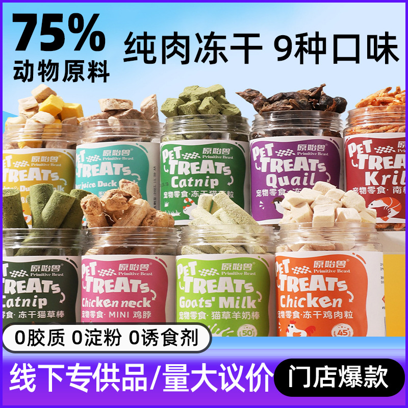 原始兽宠物冻干零食猫咪冻干鸡肉粒猫草磨牙棒羊奶棒狗狗零食批发