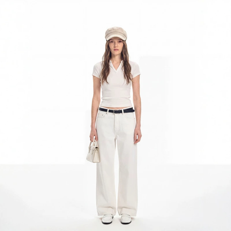 2026夏季新款纯色V领polo衫女短款修身显瘦简约风短袖T恤上衣批发