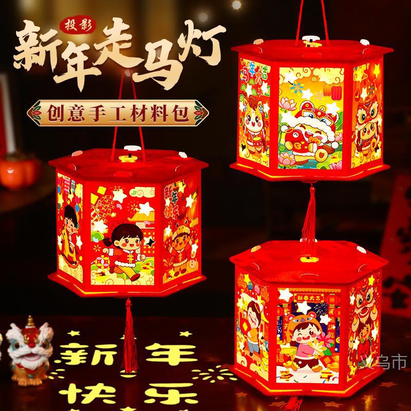 元宵灯笼diy儿童手提走马灯发光投影花灯幼儿园新年春节手工宫灯