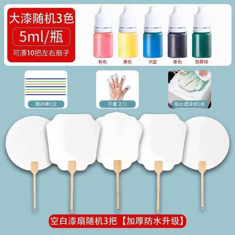 漆扇材料包儿童手工diy制作飘漆扇天然大漆颜料摆摊全套空白扇子