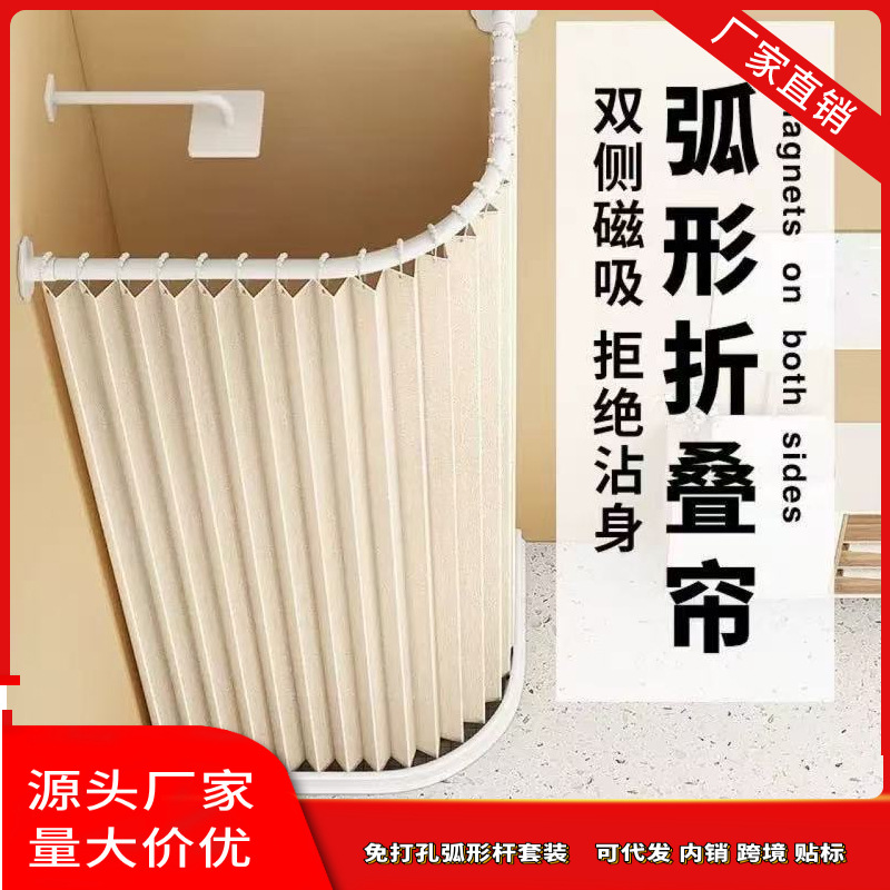 折叠浴帘磁吸套装免打孔浴室防水布卫生间弧形淋浴干湿分离隔断帘