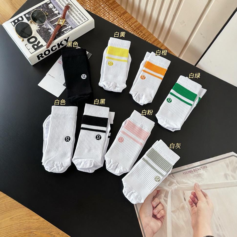 新款棉质露LU 拼色刺绣条纹休闲运动潮流训练中筒袜子批发