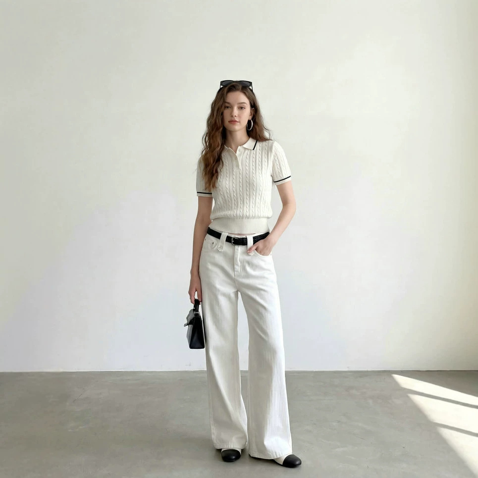 2026丝光羊毛老钱风POLO领修身短款麻花纹短袖针织衫女薄款上衣