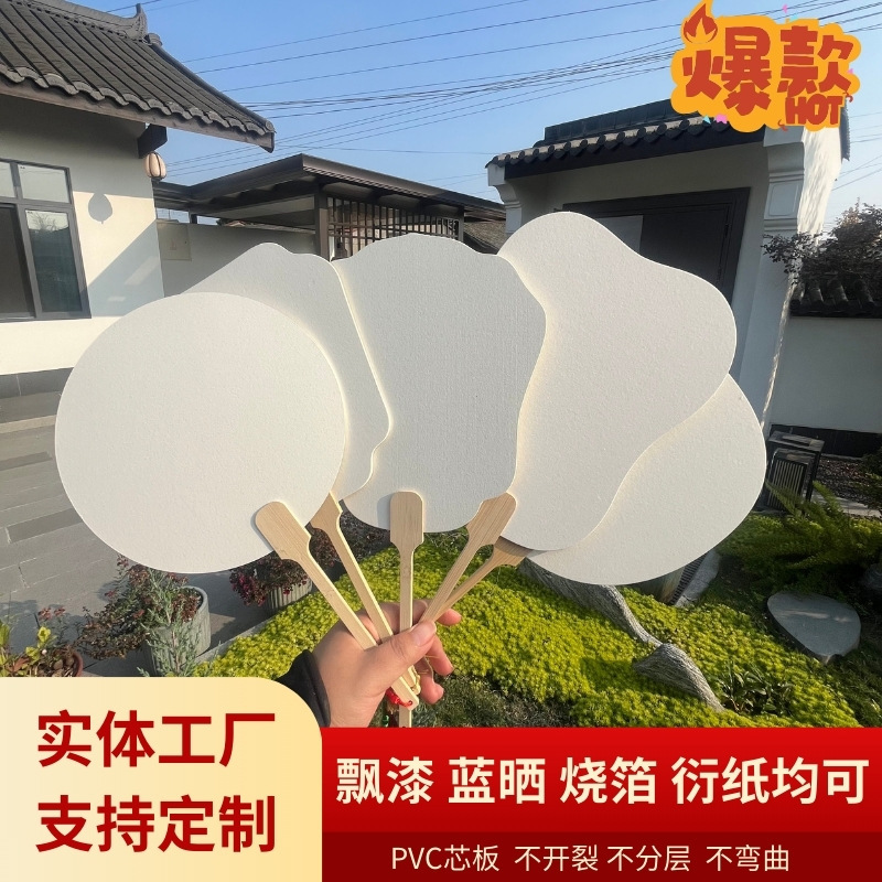 PVC半生熟团扇加厚大漆白扇带画漆扇景区大漆水拓白色漂漆专用扇