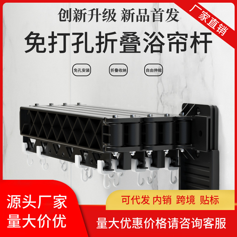 隐藏折叠浴帘杆免打孔浴室防水隔断帘卫生间干湿分离淋浴挡水挂帘