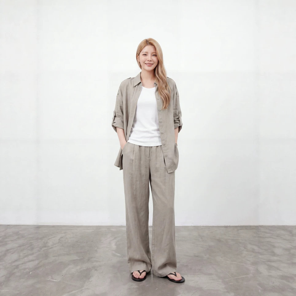新款防晒长袖天丝亚麻松弛感空调防晒衫衬衫女宽松阔腿休闲裤套装