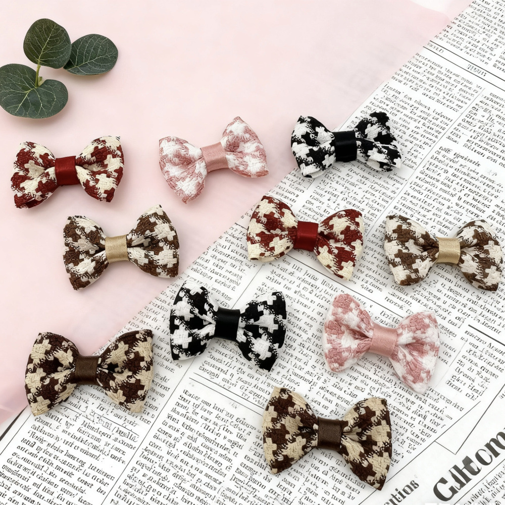 跨境爆款简约格纹DIY复古千鸟格布艺蝴蝶结胸针发饰百搭配饰