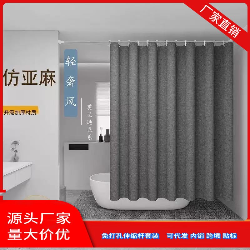 跨境定制斯亚马逊仿亚麻罗马大扣卫生间加厚浴帘厂家直销防水防霉
