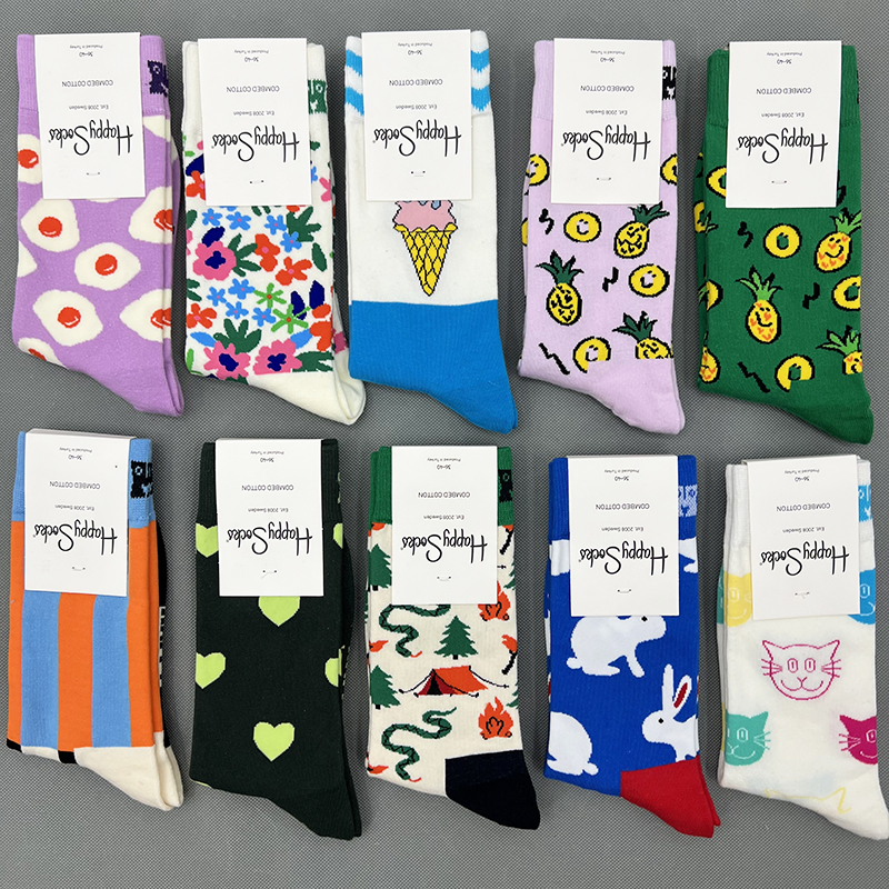 happy新爆女中筒袜瑞典潮HS棉百搭四季袜子