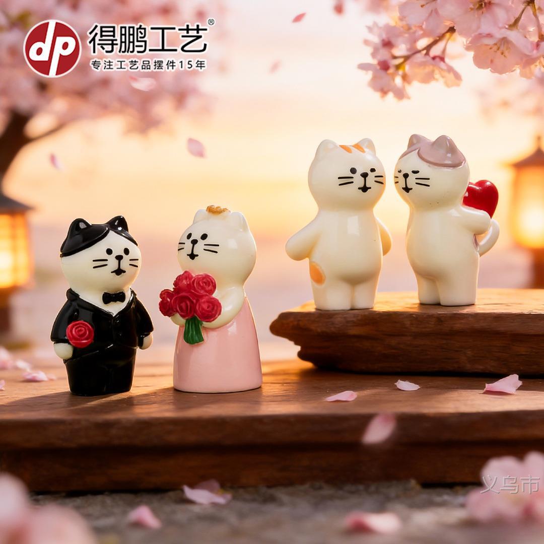 微景观卡通可爱日系情侣猫咪树脂工艺品装饰配件桌面汽车载小摆件