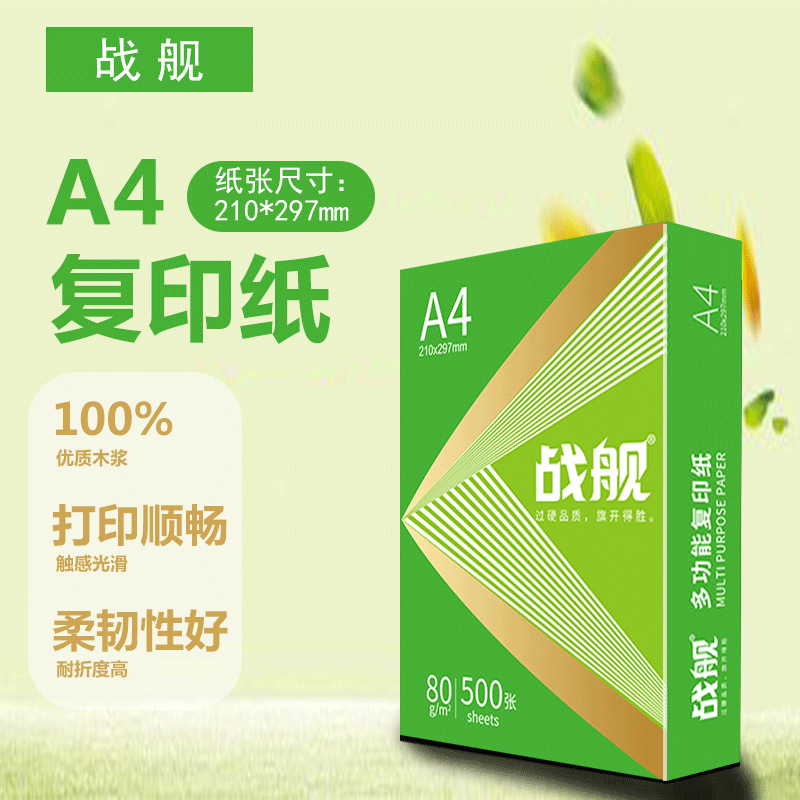 战舰A4复印纸70g80g办公打印纸500张整箱双面激光静电复印纸原生