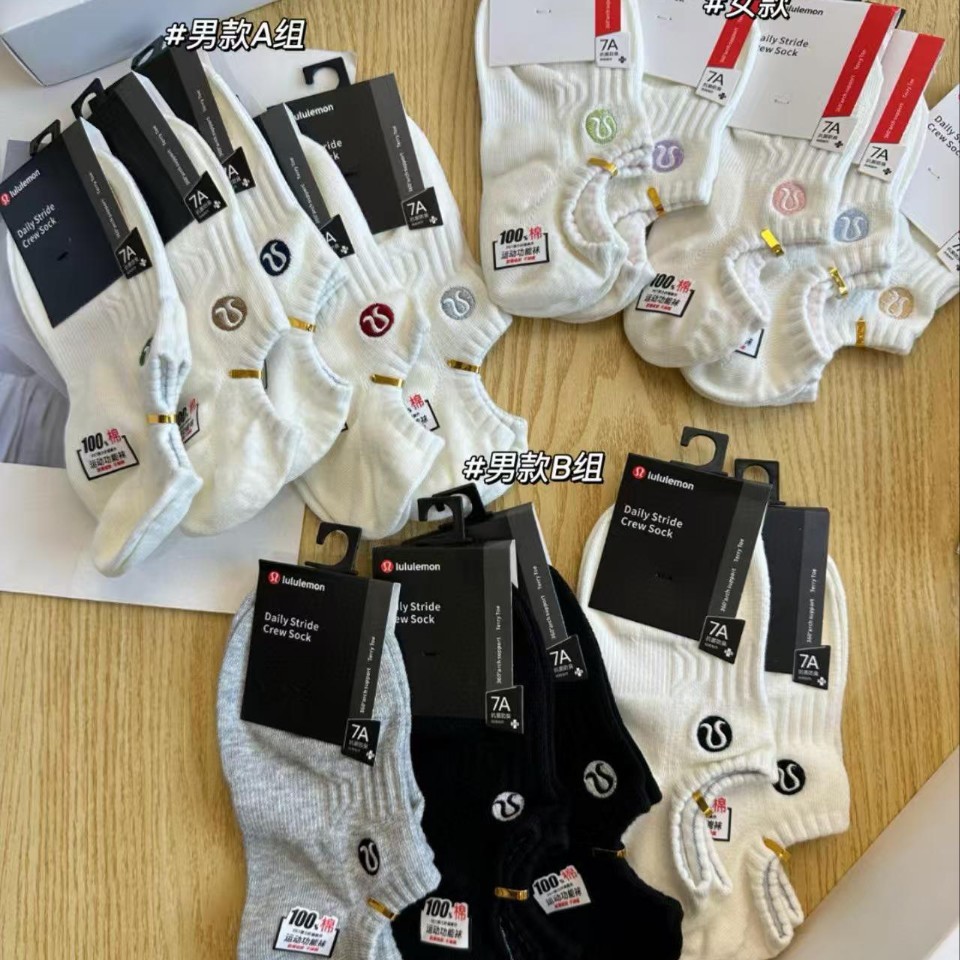 五双装刺绣lulu男女袜春夏季休闲纯色袜秋季薄款刺绣船袜袜拖
