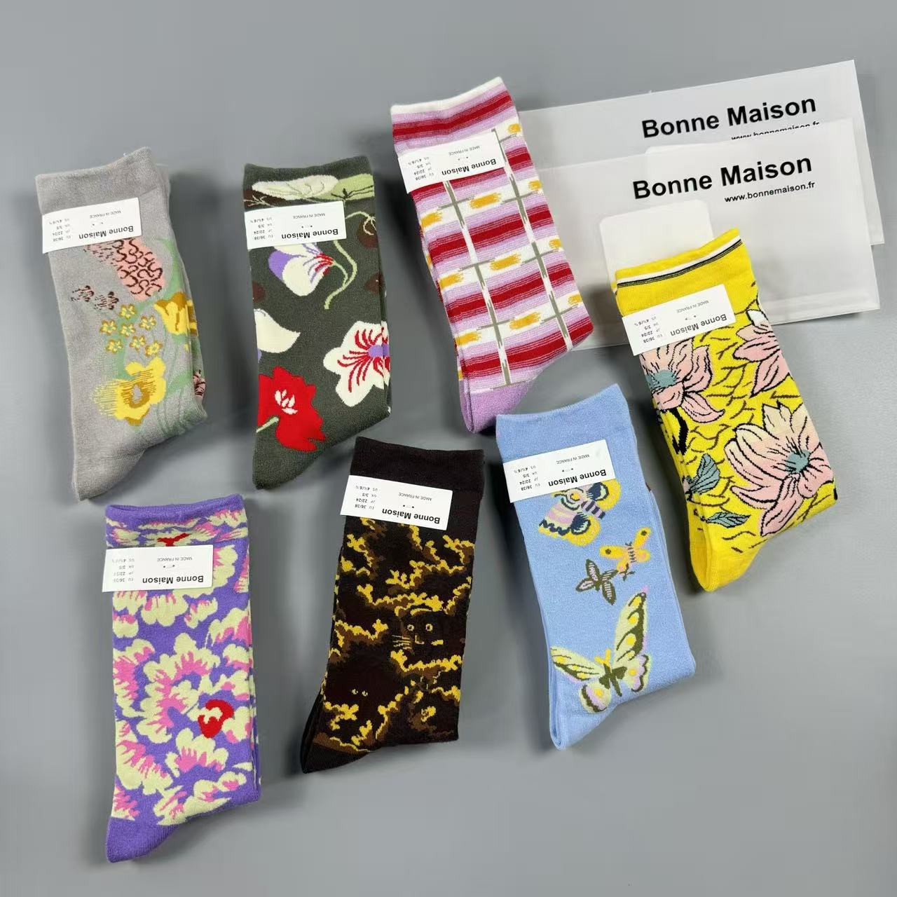 日单时尚百搭土星女袜森系花卉复古浮雕中筒刺绣卡通松口棉袜批发