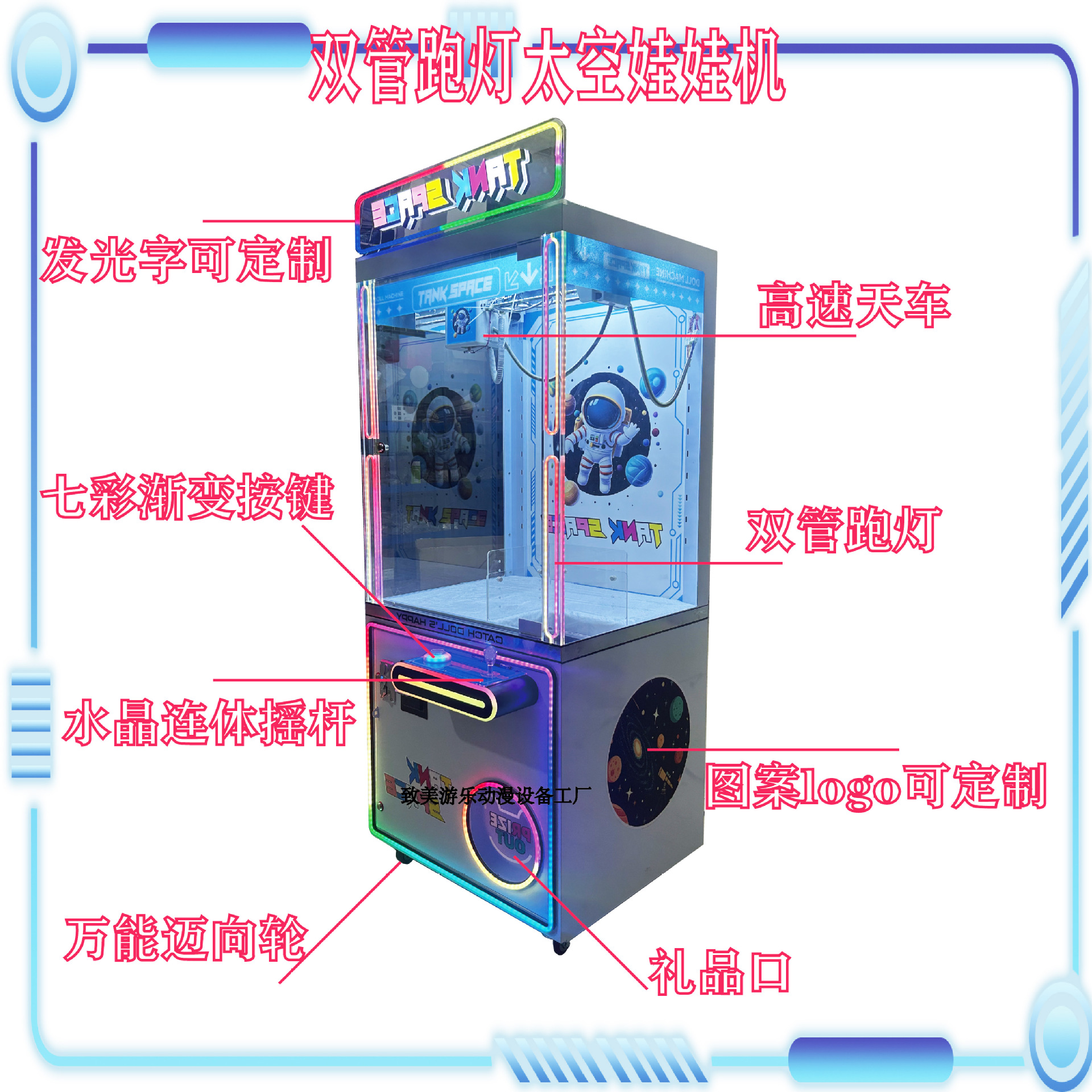 | 材质 | 五金+钢化玻璃+亚克力 | 货号 | 双管跑灯太空娃娃机 |