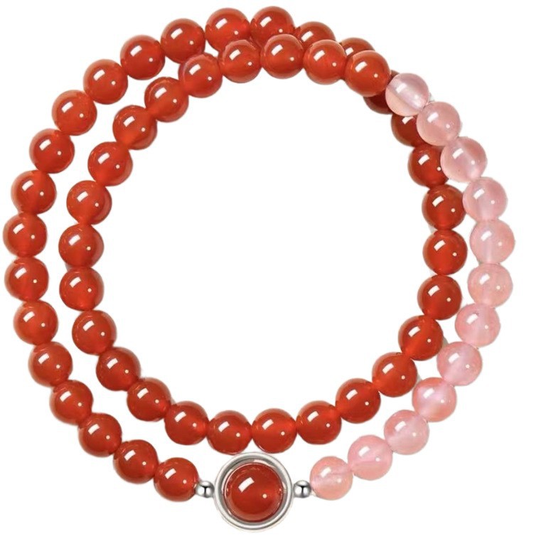 | 颜色 | 【补金-疗愈净化】双圈6mm天然白玛瑙+白水晶(手围16-17cm) | 颜色 | 【补火-福来运转】双圈6mm天然冰种红玛瑙+南红(手围16-17cm) |