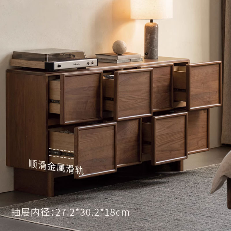 北欧简约实木斗柜轻奢储物柜卧室北美黑胡桃木八斗厨家用抽屉柜