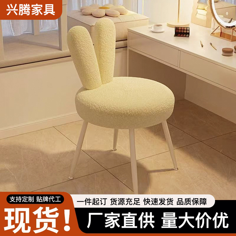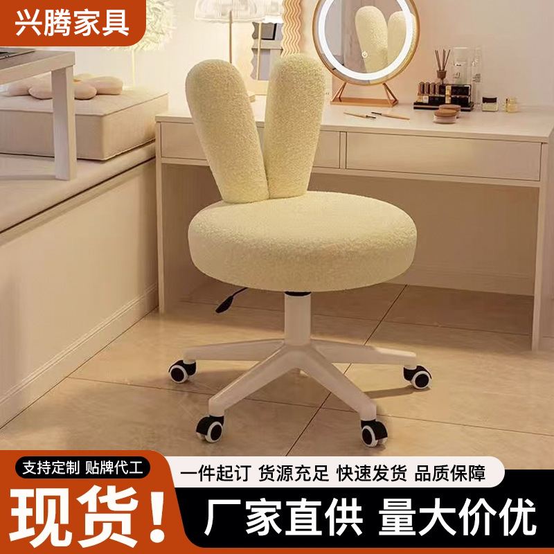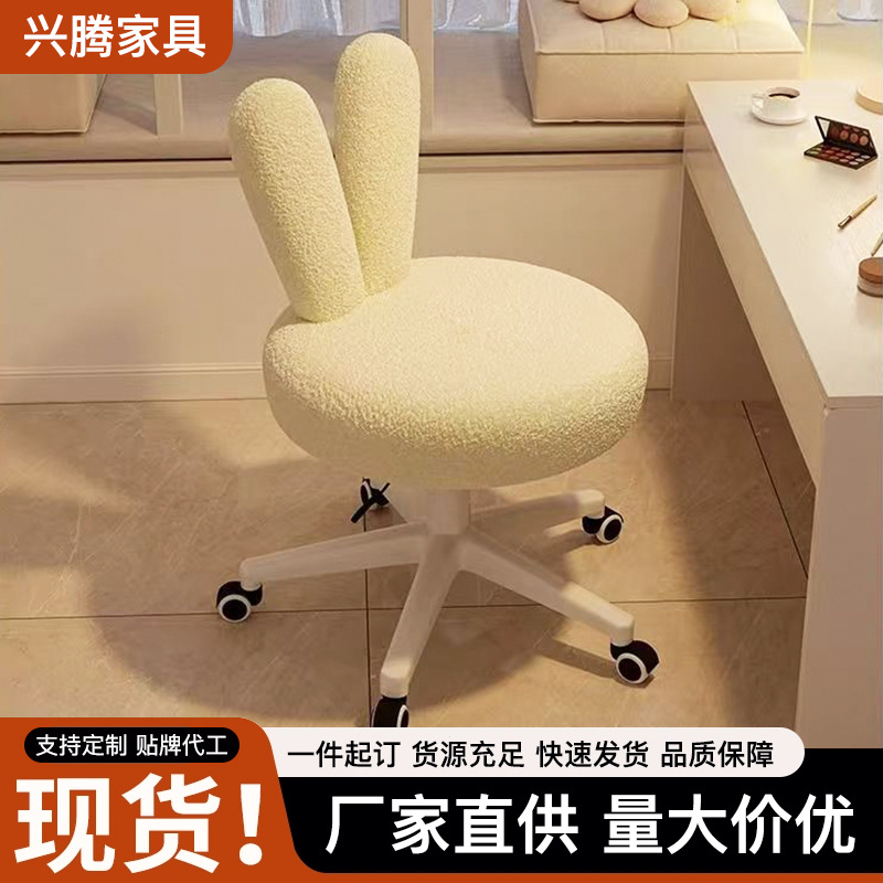兔耳朵化妆凳奶油风羊羔绒椅子卧室电脑靠背椅卡通可升降旋转椅子
