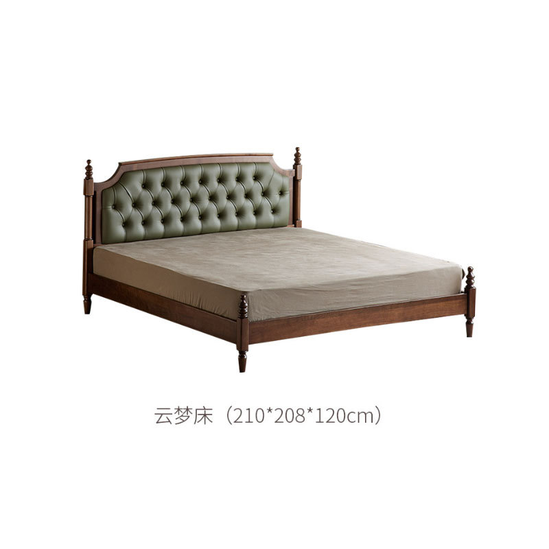 馨宜居北美胡桃木床北欧简约1.8米实木床主卧真皮软包双人床婚床