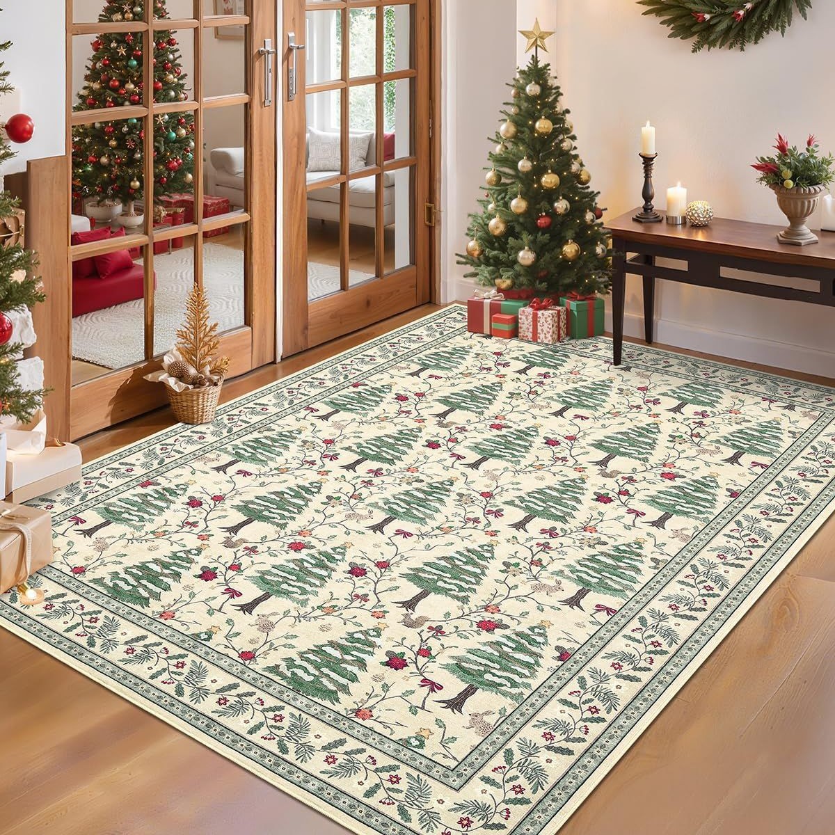 圣诞节装饰地毯卧室客厅耐脏耐磨茶几沙发床边地垫防滑节日地垫