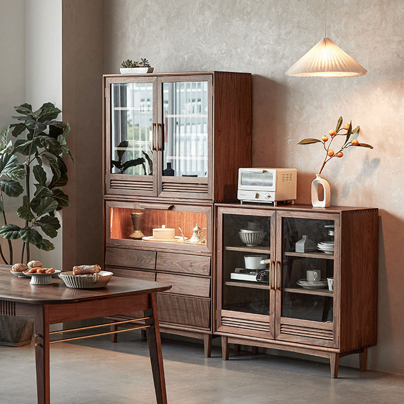 北美黑胡桃木实木组合矮书柜樱桃木原木落地玻璃门收纳置物储物柜