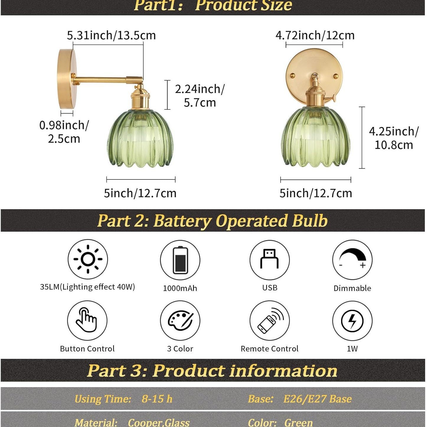 亚马逊跨境复古绿色全铜壁灯罩180度可调可无线充电卧室玻璃壁灯