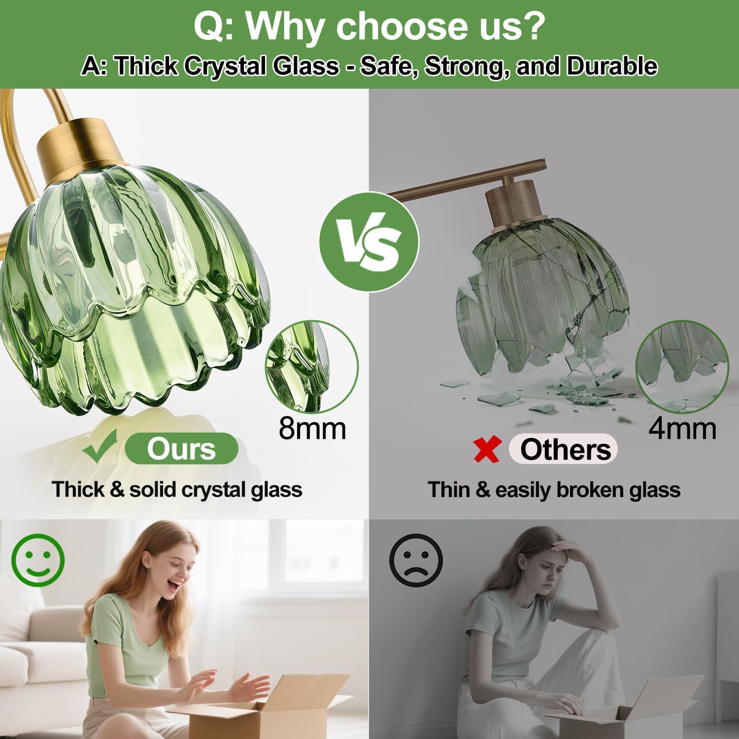 跨境专业北欧室内壁灯带罗纹绿色郁金香玻璃灯罩适用于浴室梳妆台