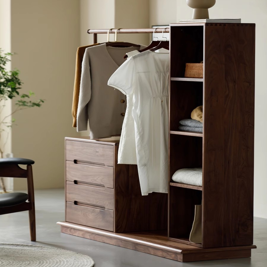 北美黑胡桃木斗柜衣帽架一体樱桃木多功能区分式挂衣柜客厅玄关柜