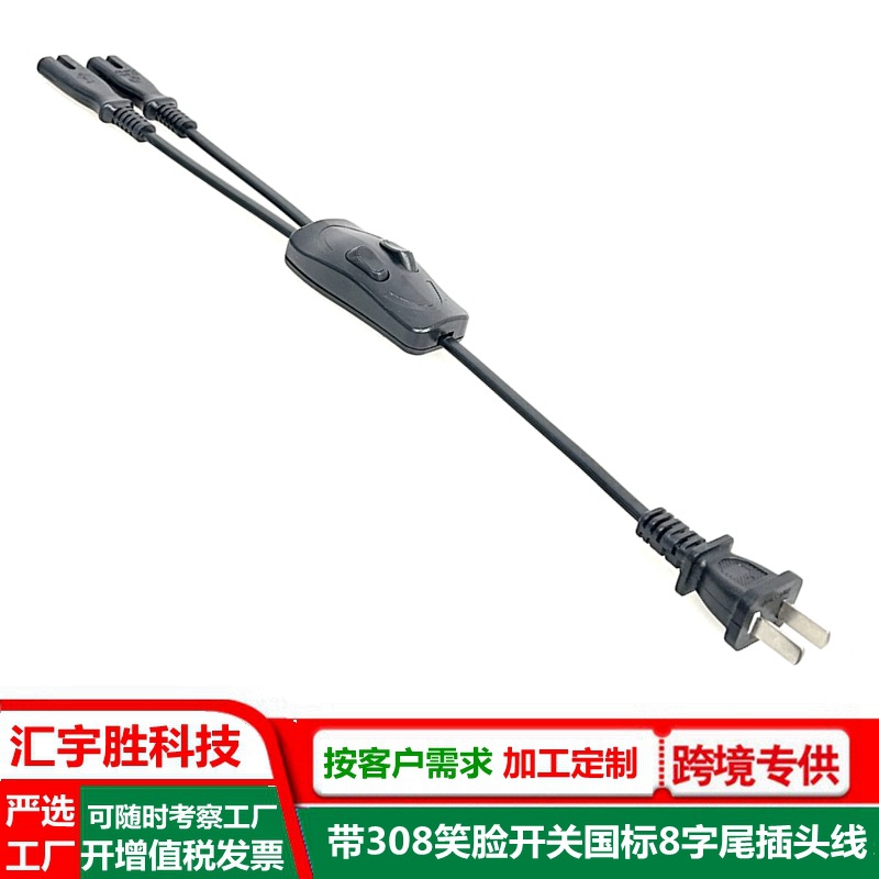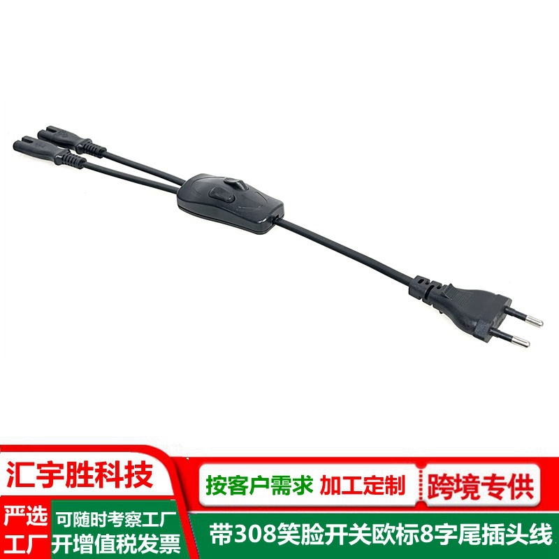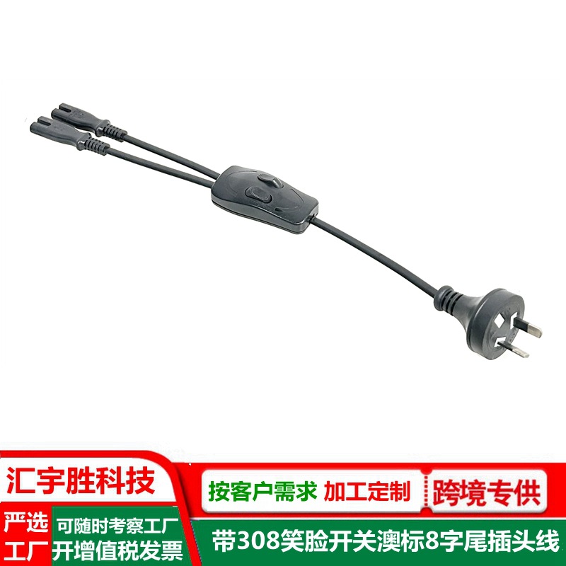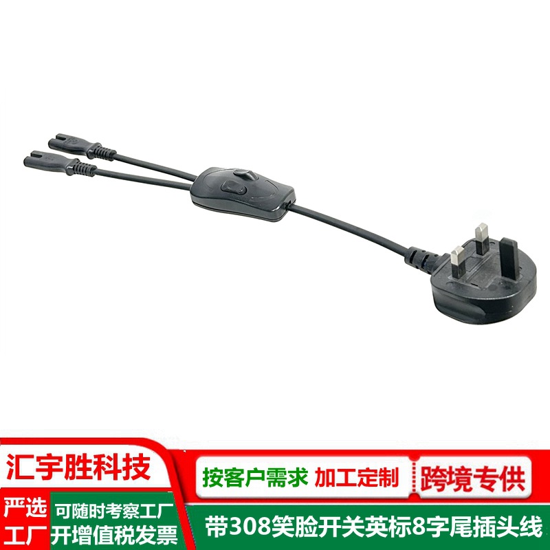 308开关电源线 国标 欧规 英式 澳洲 双档翘班开关2孔8字尾插头线