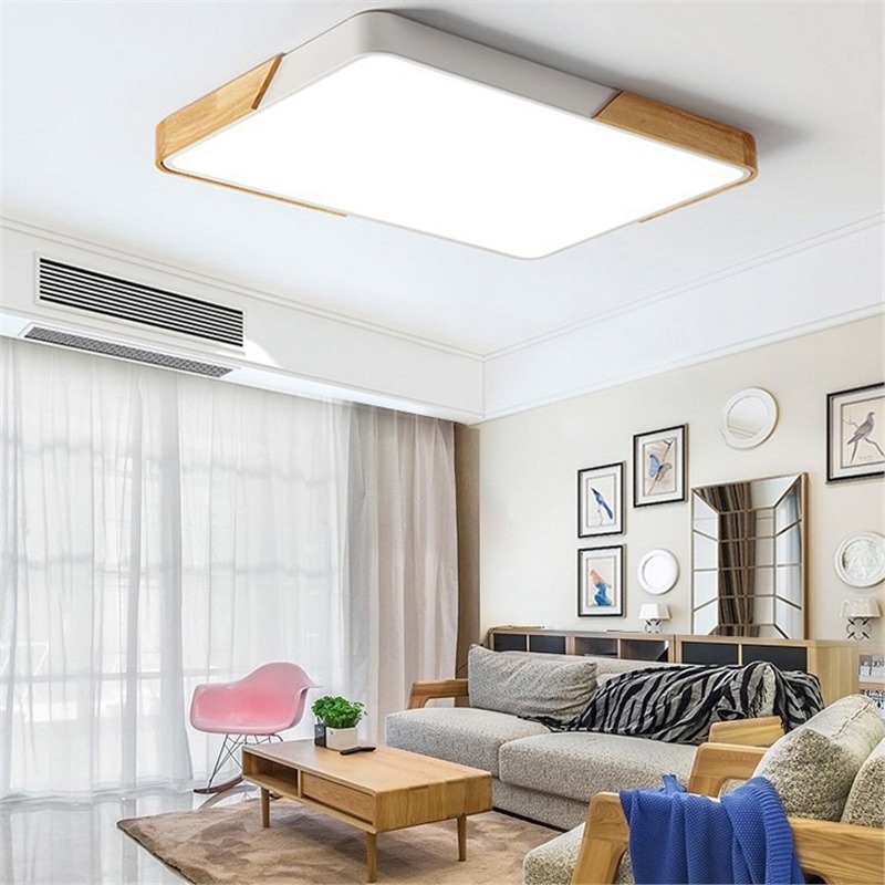 led吸顶灯马卡龙智能卧室灯现代简约大气家用长方形边木客厅灯具