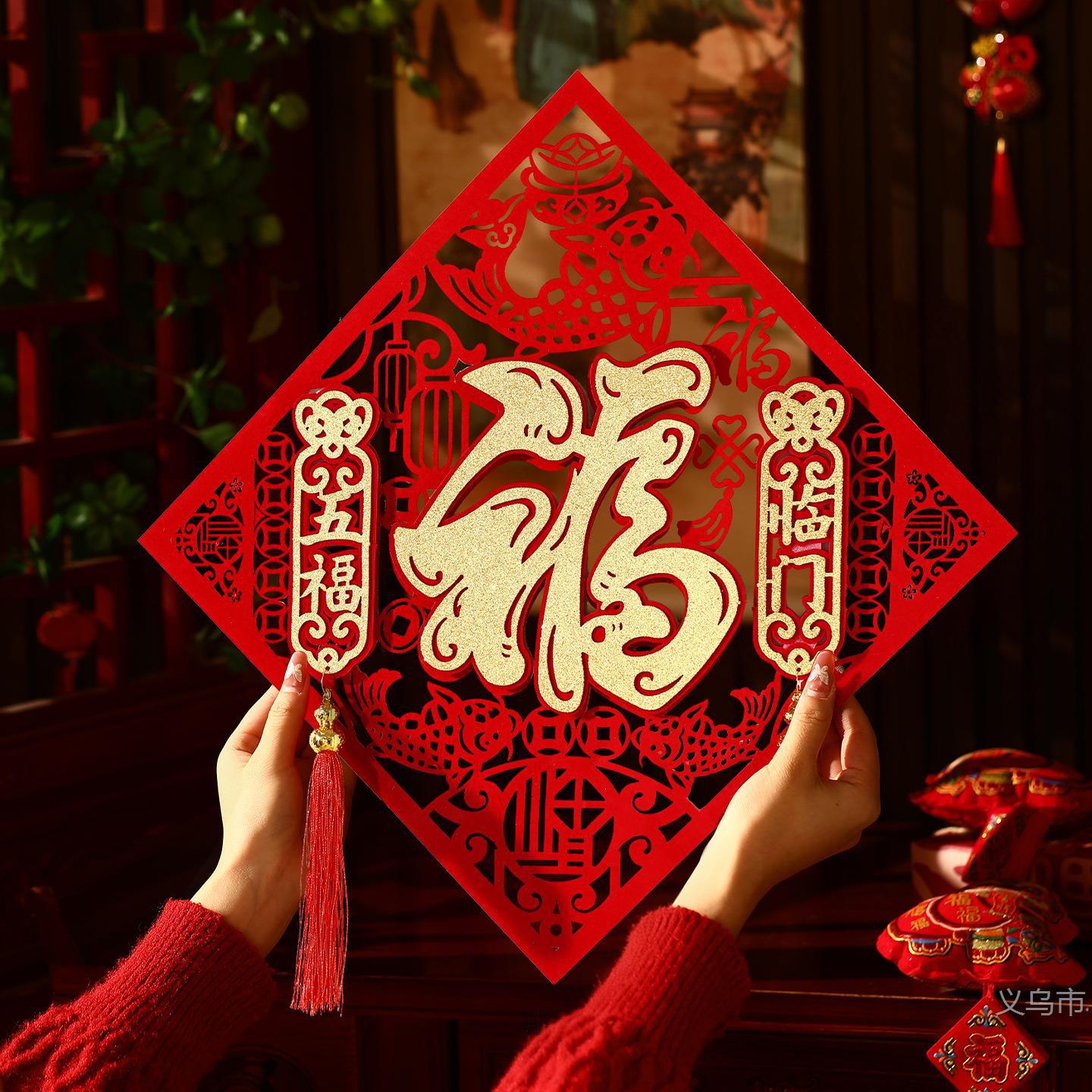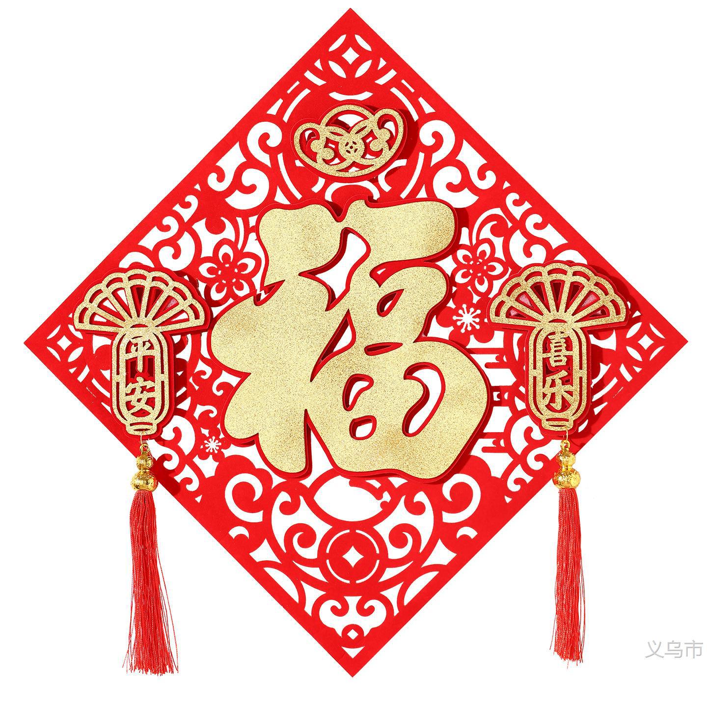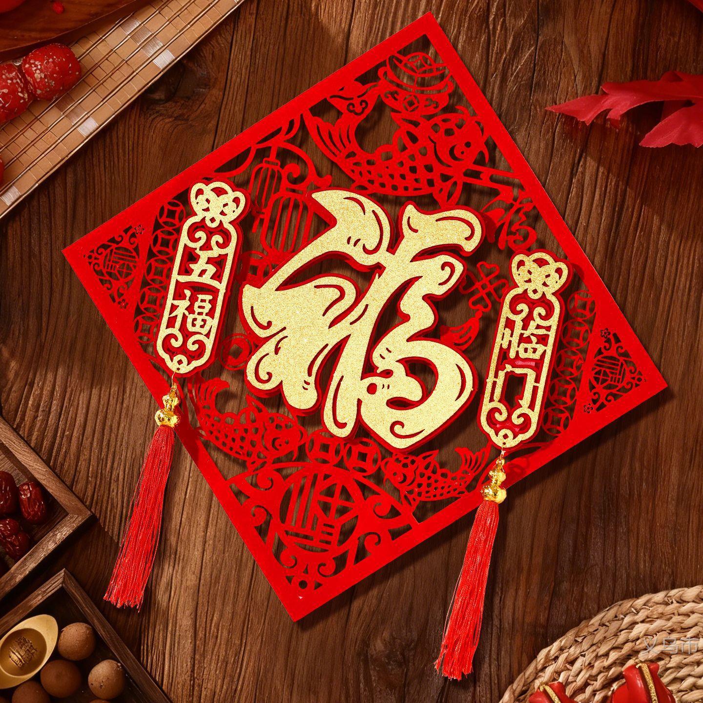 2026新款马年镂空流苏门贴新年入户门双层毛毡福字贴装饰春雨哈哈