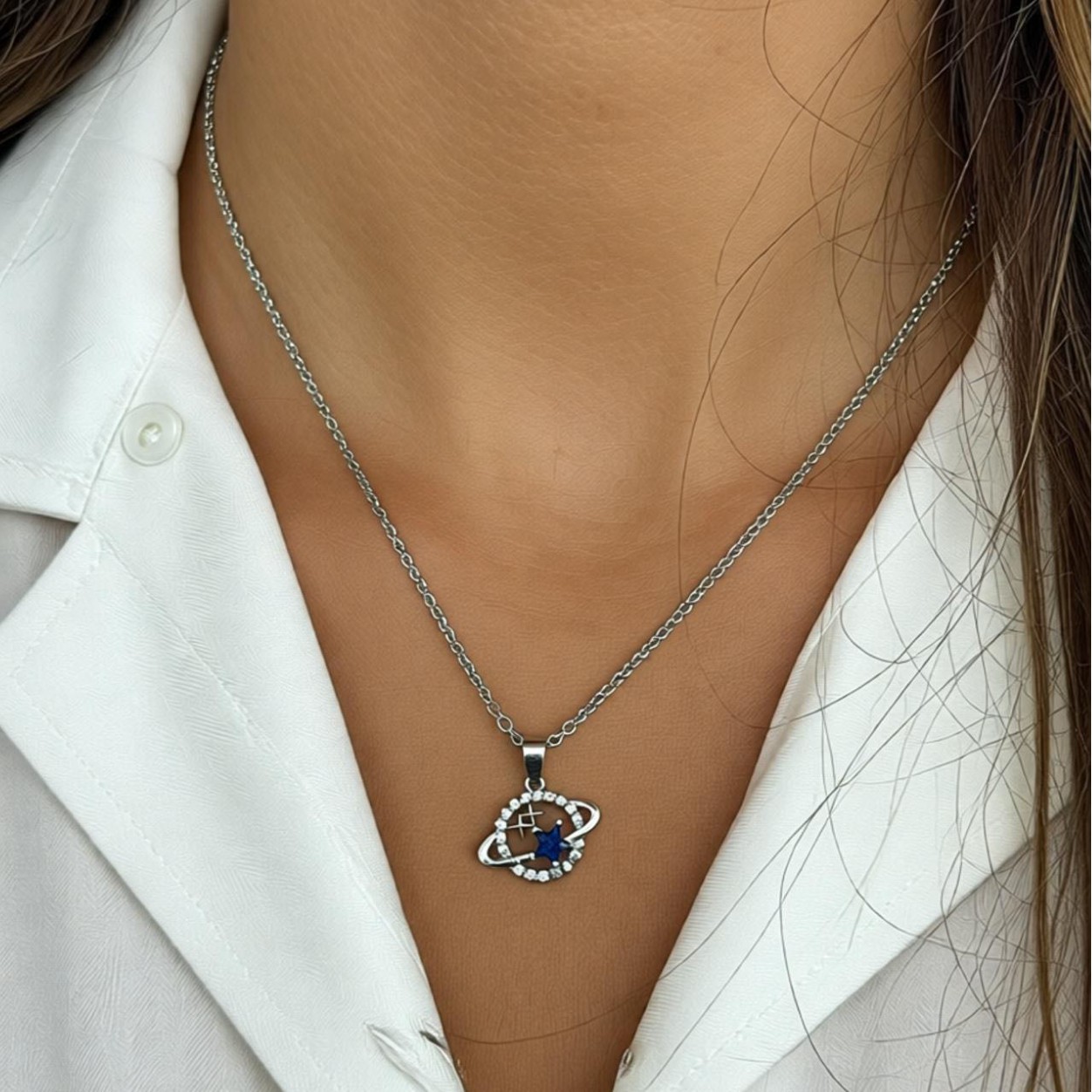欧美爆款报蓝色星球项链女 设计感星球流星球微镶宝蓝款气质项链