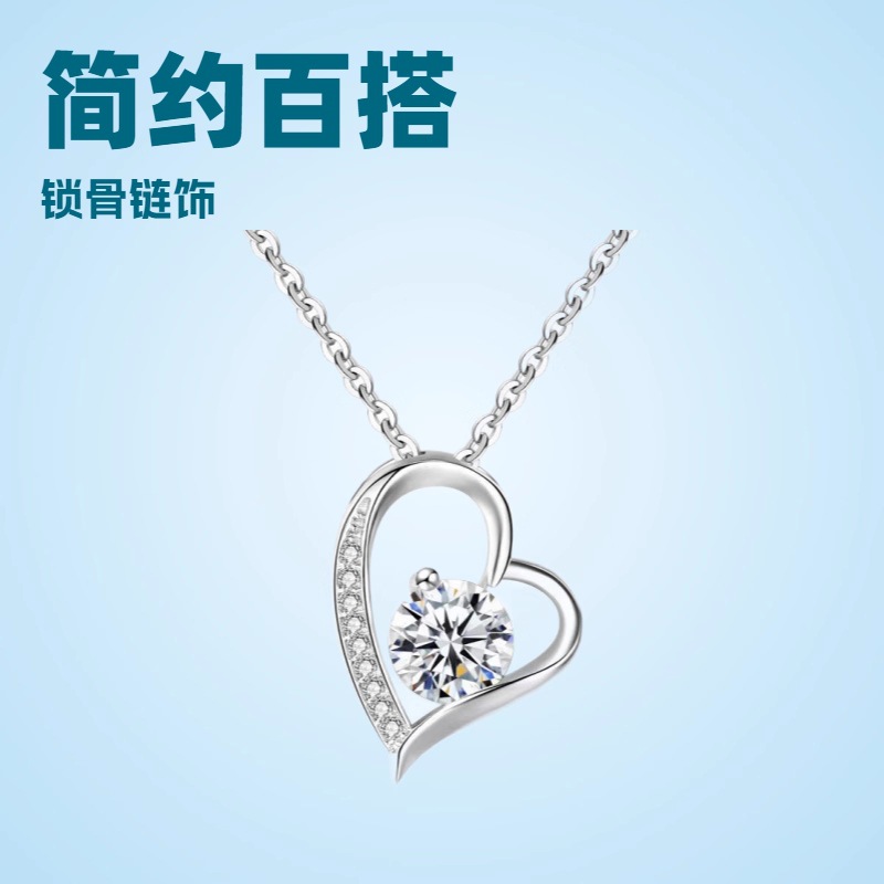 爱心S925颈链形项链女锆石吊坠轻奢小众设计女友心形生日礼物锁骨