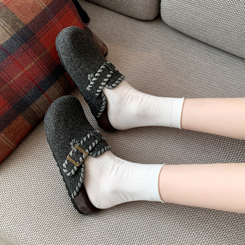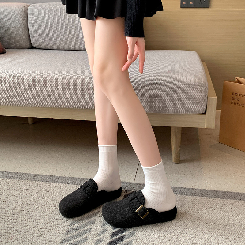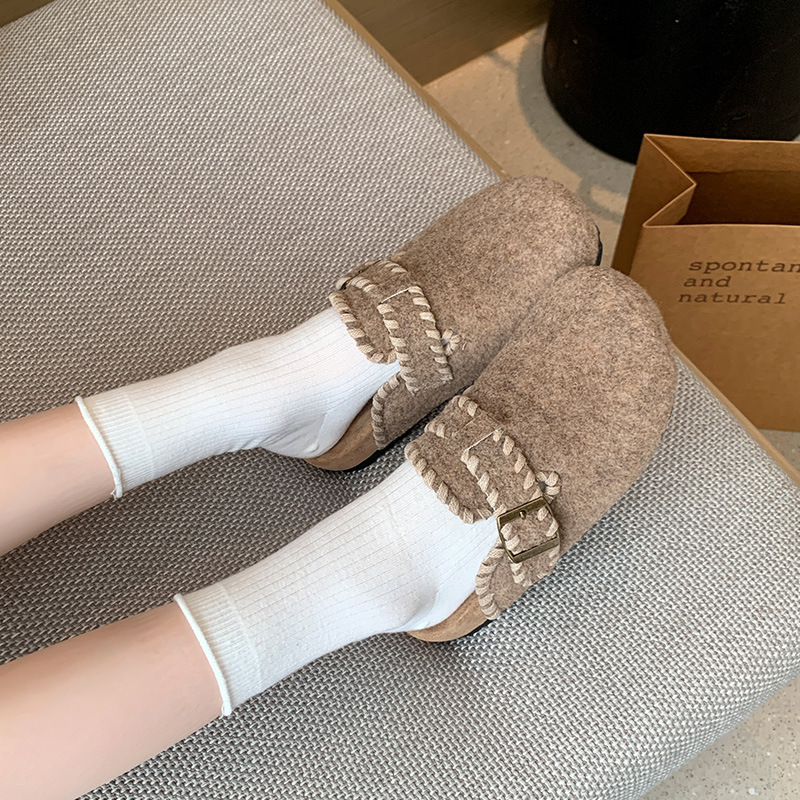 胖mm2025新款包头勃肯鞋半拖厚底毛毛鞋女外穿拖鞋冬季宽胖脚女鞋