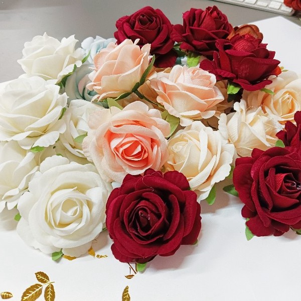 红色仿真花朵系列diy手工仿真花假花头饰配件簪花婚庆材料装饰花