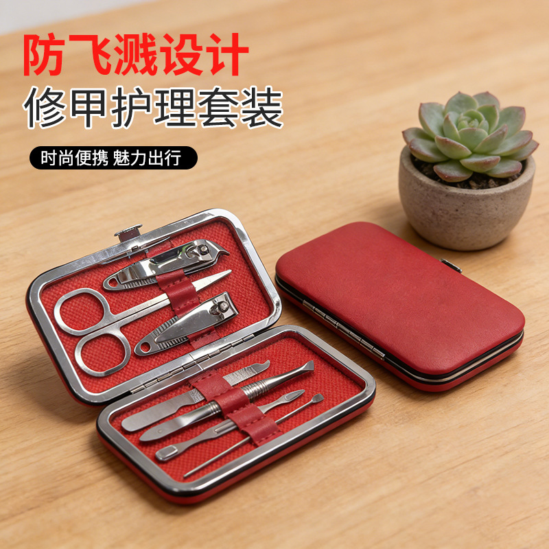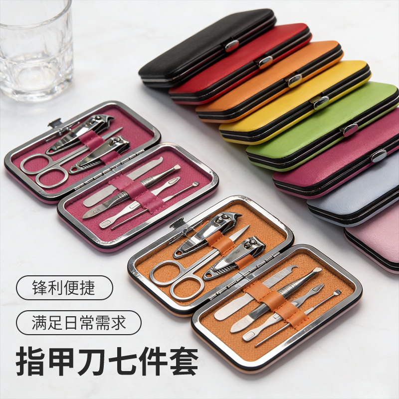 糖果色修甲美容挖耳勺七件套分隔收纳多种颜色选择便携指甲剪套装