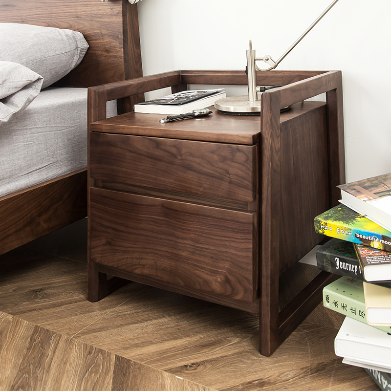 床边柜北美黑胡桃全实木床头柜北欧风卧室床边带锁储物柜抽屉斗柜