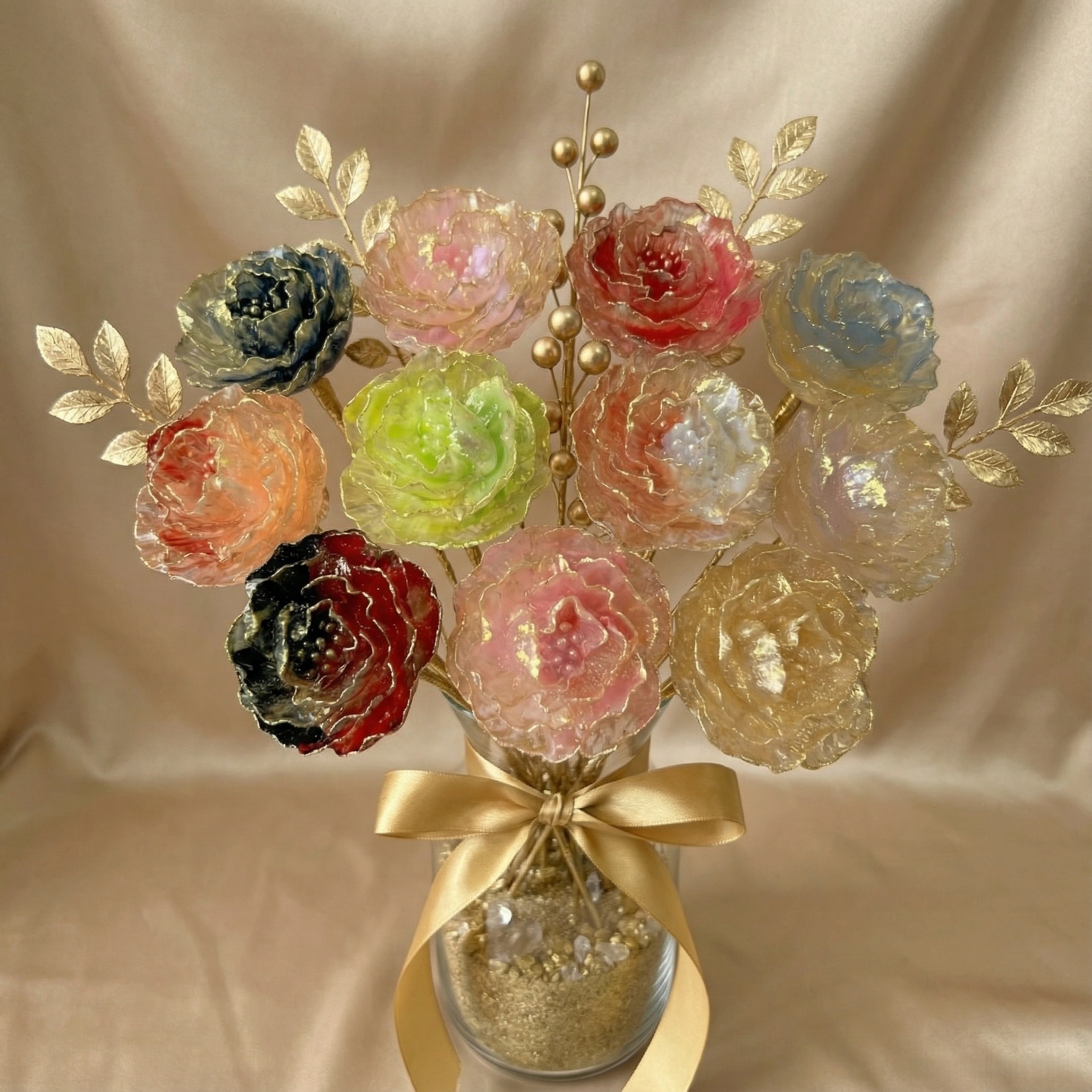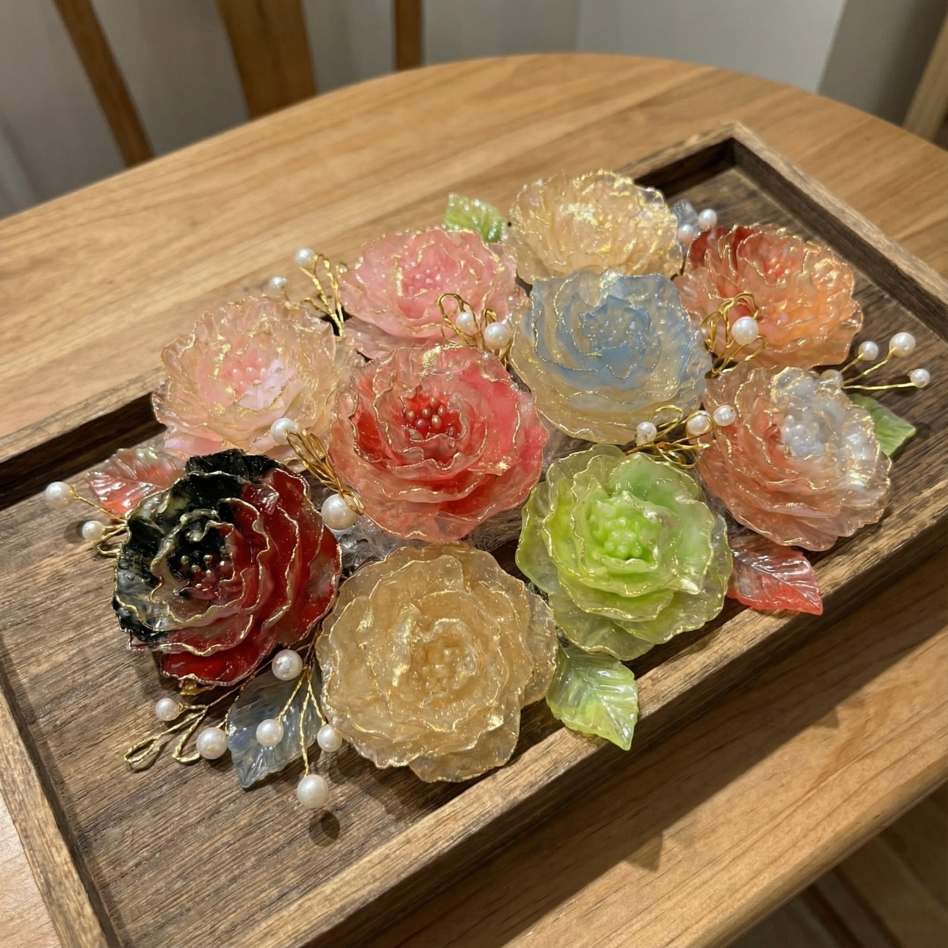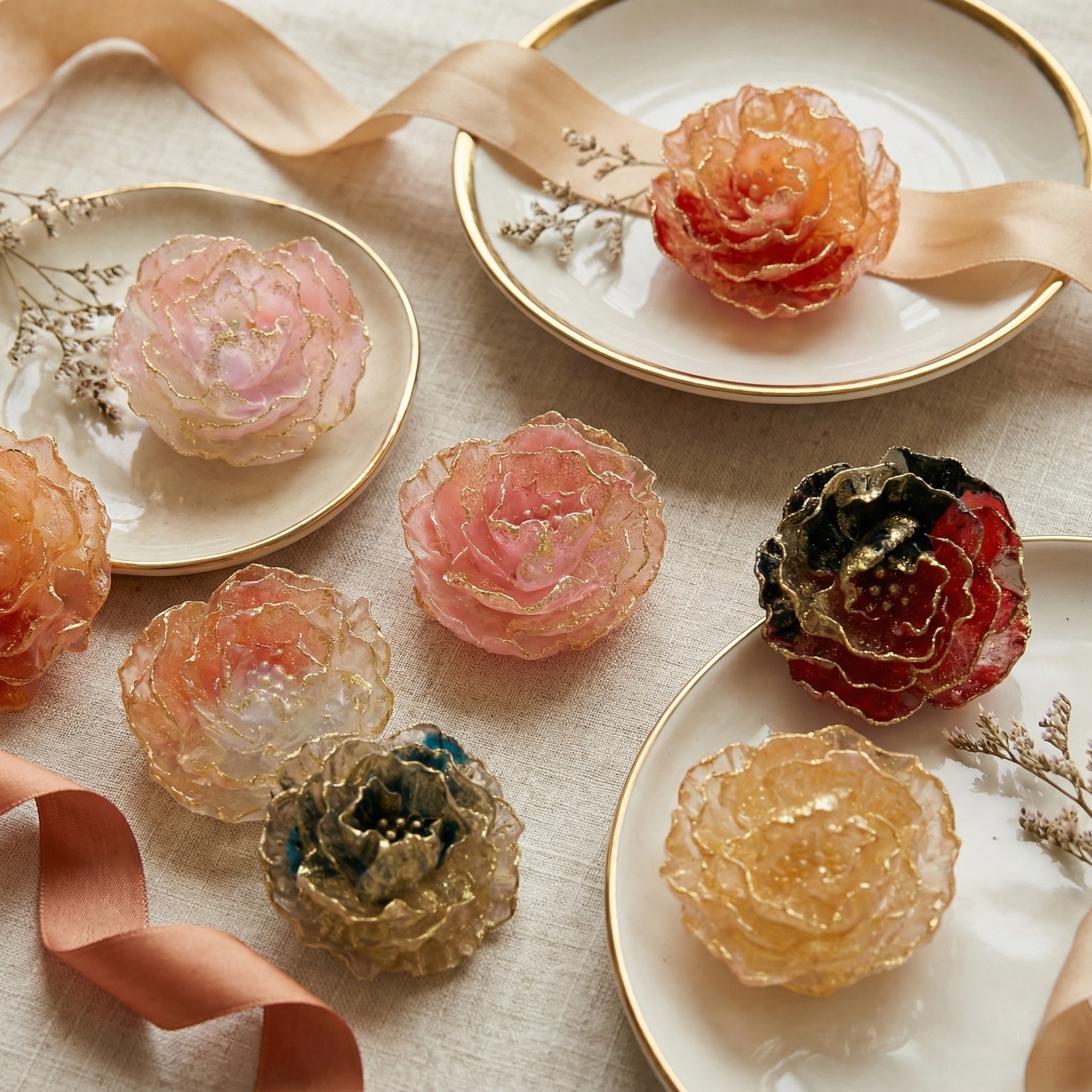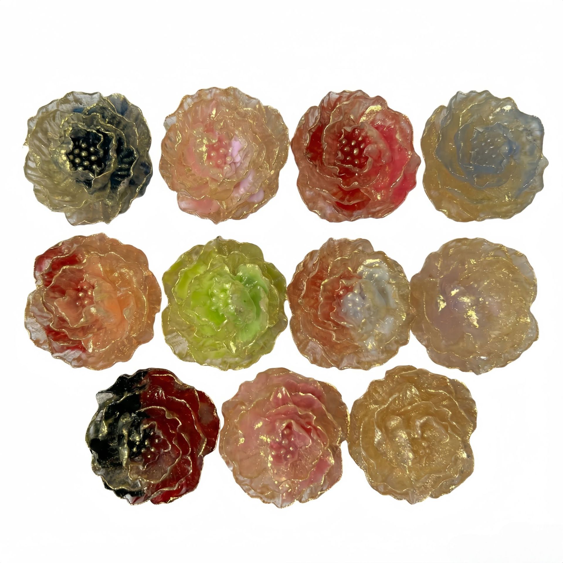 双色金粉重瓣玫瑰DIY手工发夹手机壳树脂饰品配件卡37mm