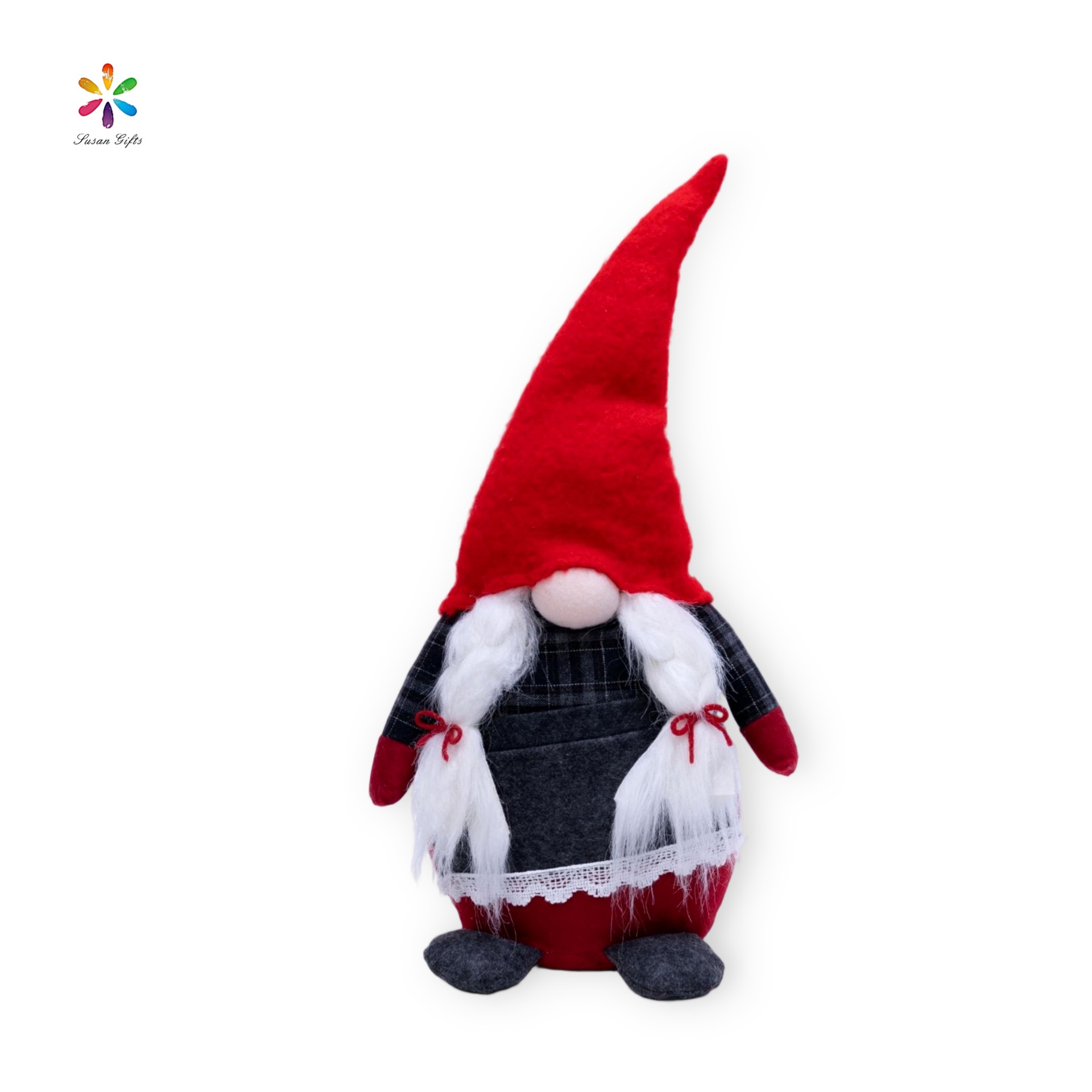 批发圣诞地精鲁道夫矮人情侣写实地精红尖帽黑格子衣服坐姿短腿节