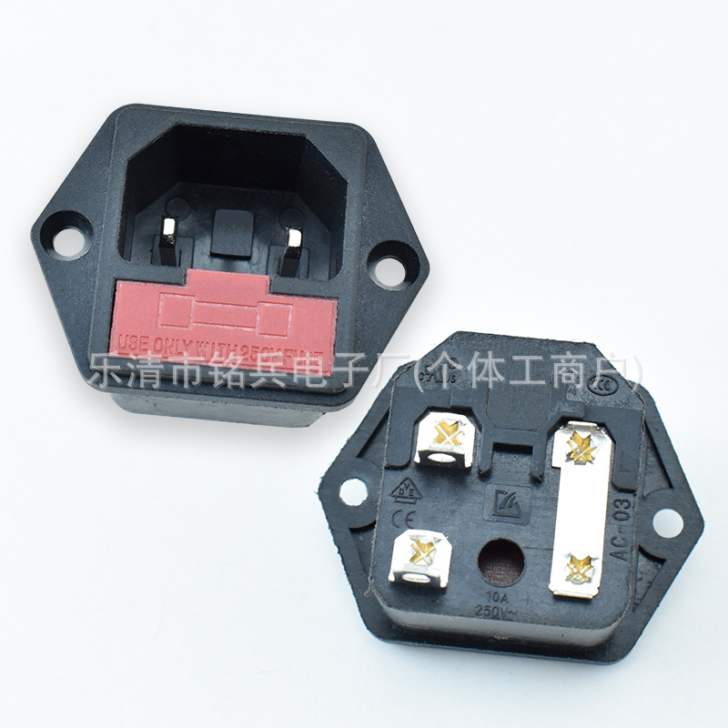 黑色 AC-03 单保险螺丝孔 二类两针(红色保险座)