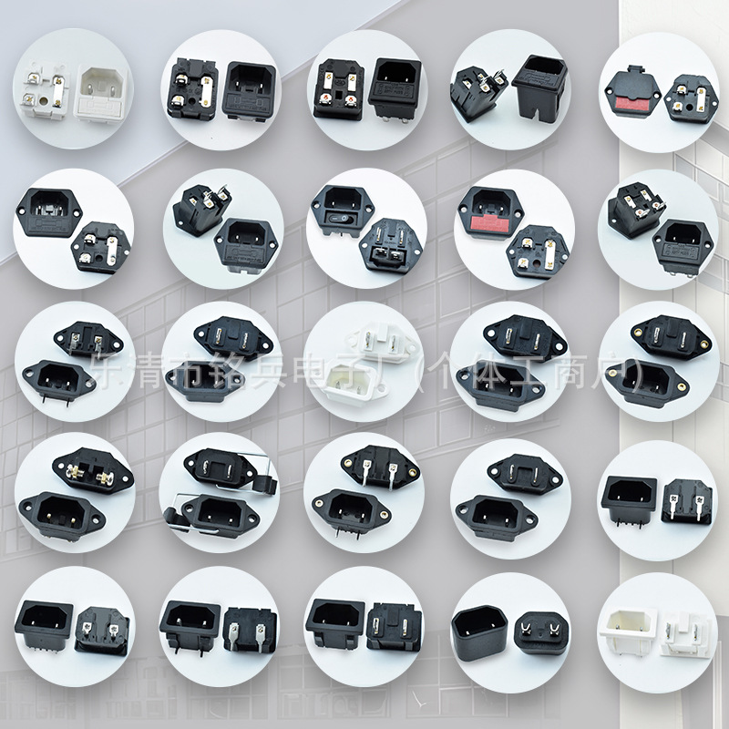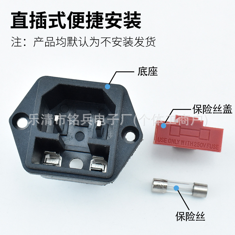 安规AC电源插座 AC-03二合一带保险丝品字插座 带耳朵2针二类插座