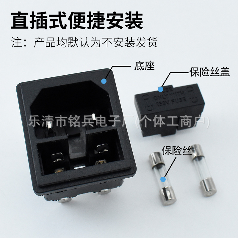 二类两针CCC认证插座 C18双保险插座 AC二合一带保险丝品字尾母座