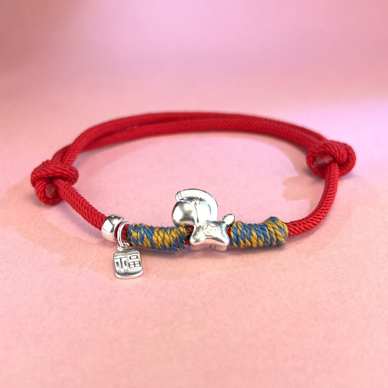 999纯银马上有钱小马红绳编织手链男女本命马年生肖情侣手链批发