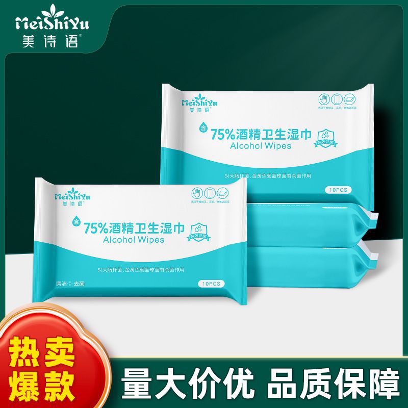 美诗语75度酒精卫生湿巾厂家批发家用清洁湿巾便携式小包卫生湿巾