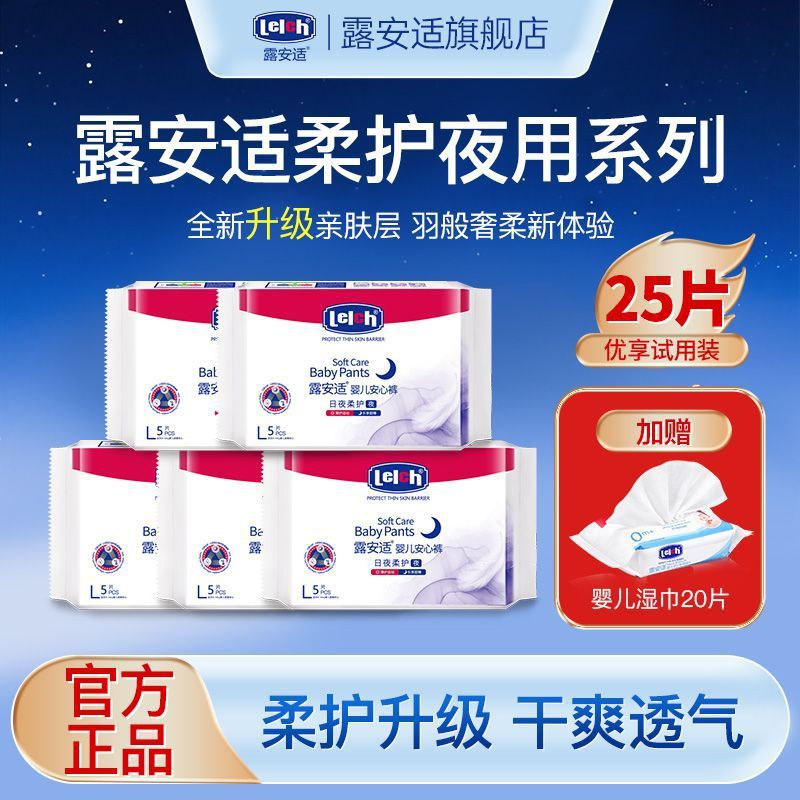 | 规格 | 柔护夜用拉拉裤L码25片和湿巾20片 | 规格 | 柔护夜用拉拉裤XL码25片和湿巾20片 |