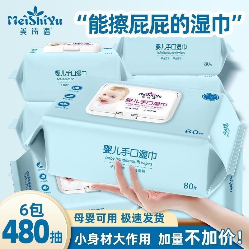 特价美诗语湿纸巾婴儿湿巾80抽大包湿纸巾新生儿湿巾纸一整箱湿巾