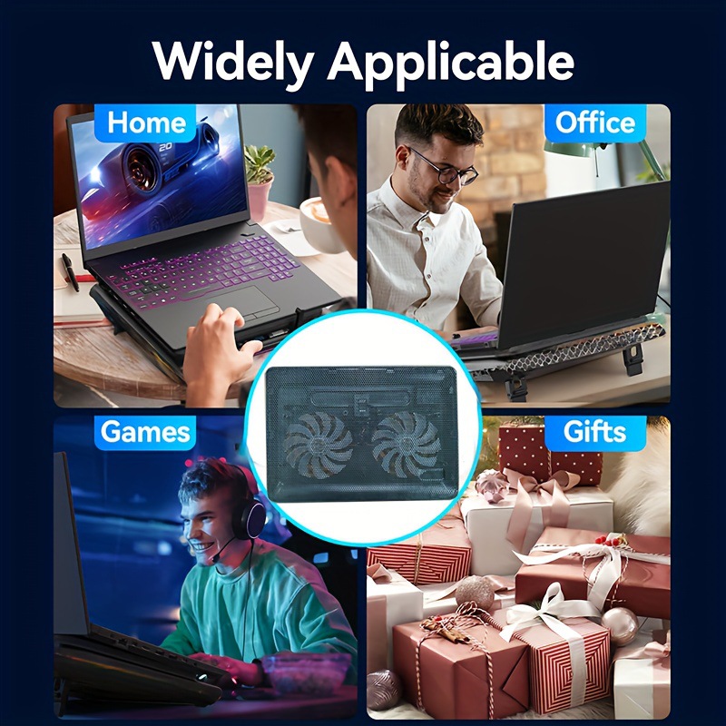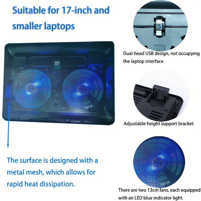 笔记本电脑散热器支架双风扇 带LED灯适用17英寸及以下笔记本电脑