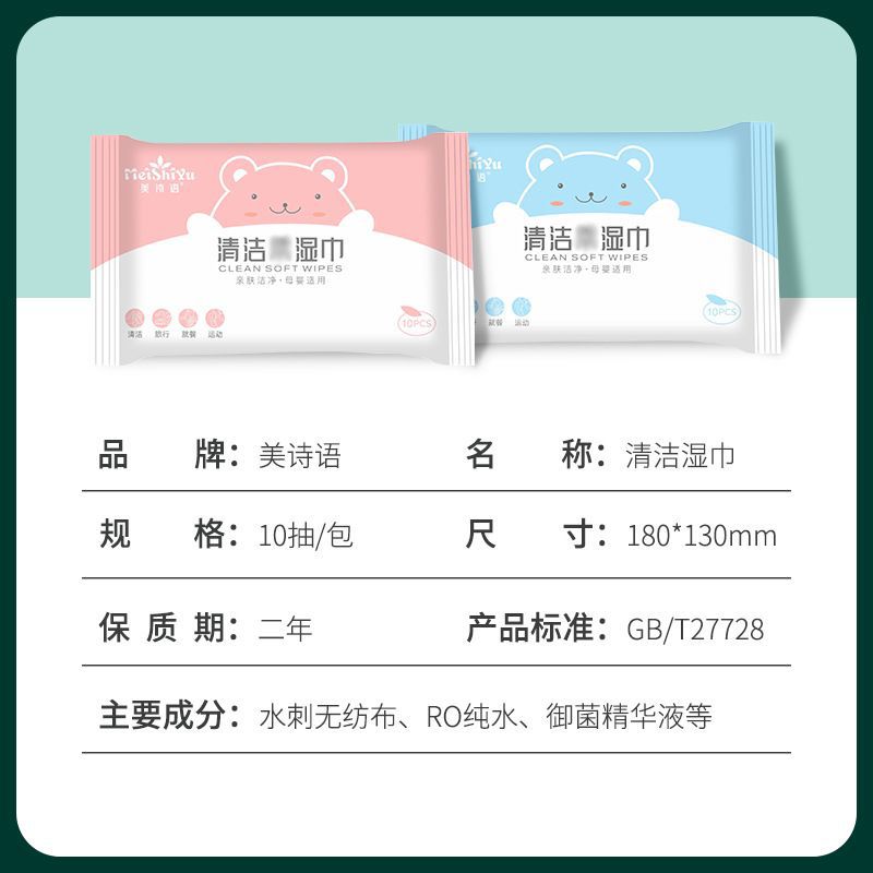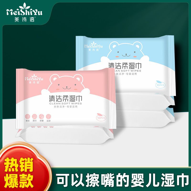 特价美诗语湿巾婴儿10片便携婴幼儿湿纸巾工厂小包湿巾纸厂家批发