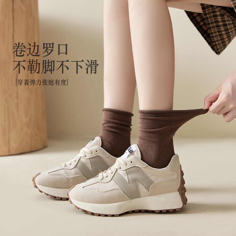 白色袜子女秋冬中筒袜 日系堆堆袜女ins松口月子长袜纯棉袜春秋款