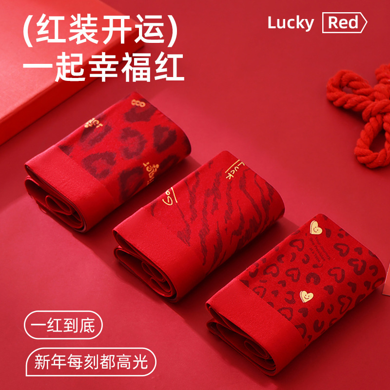 新款莱赛尔大红内裤男士本命年豹纹印花好运结婚喜庆四角底裤无痕