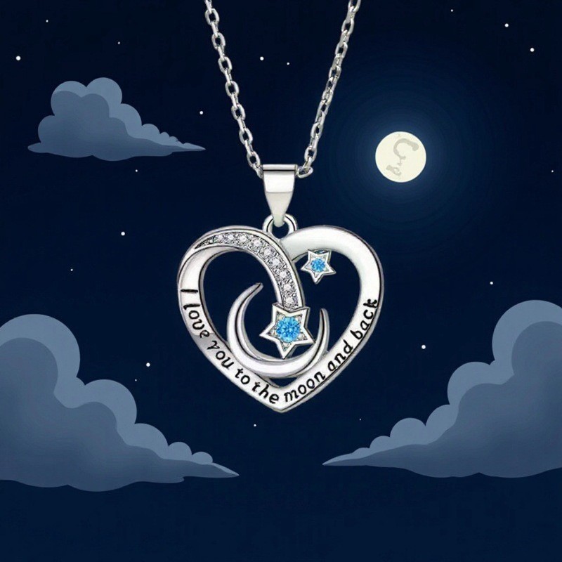 亚马逊跨境新款 简约星星月亮锁骨链星撞月时尚项链铜锆石饰品